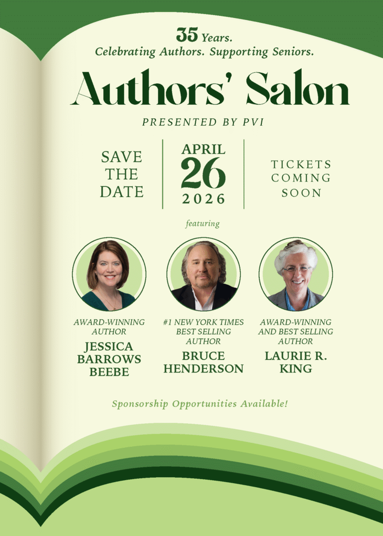 On Sunday, April 26, 2026, Peninsula Volunteers, Inc. (PVI) will proudly host our 35th Annual Authors’ Salon Luncheon, marking a milestone celebration of one of our most cherished traditions.