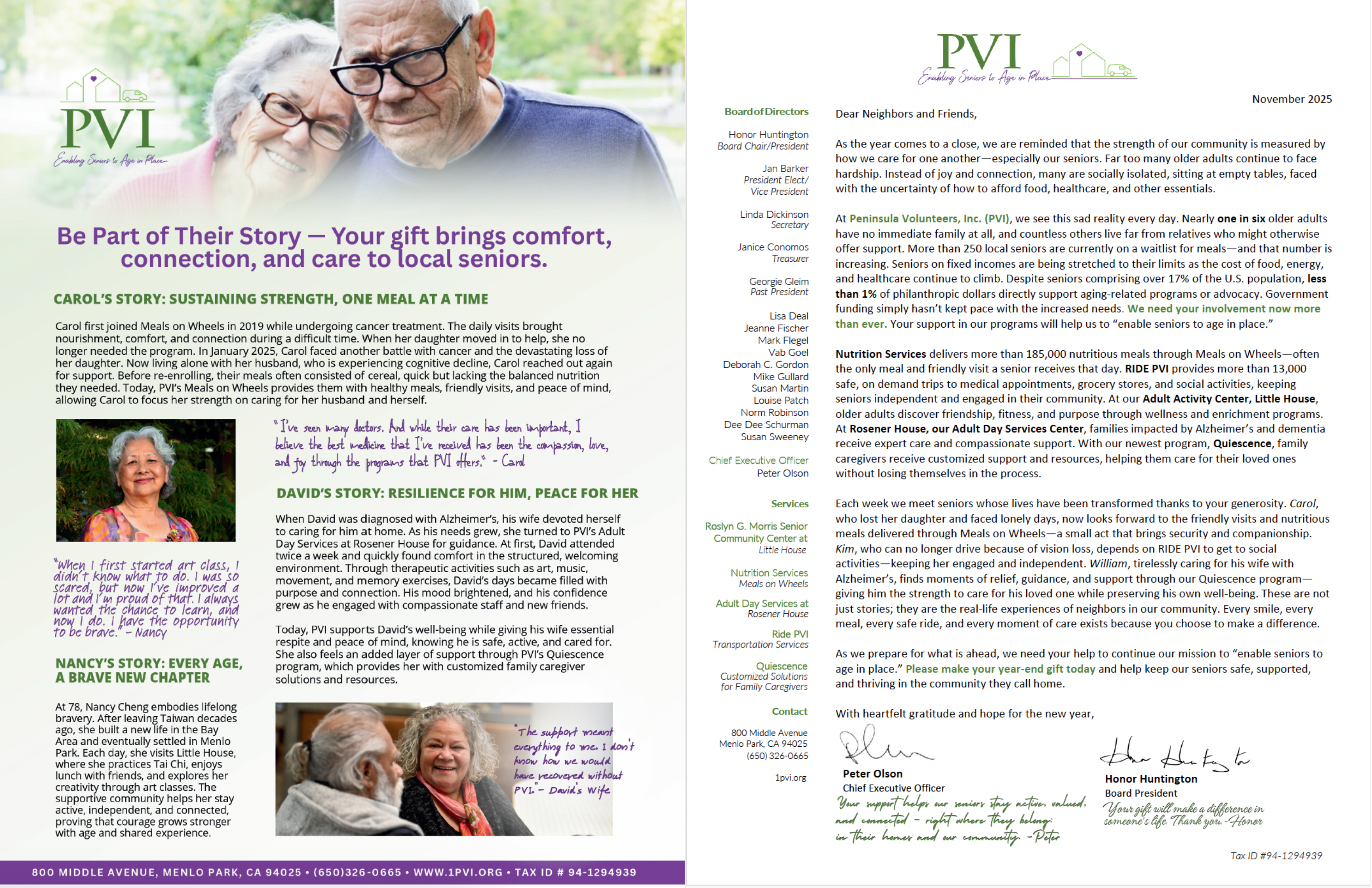 Fundraiser Highlights Please enjoy our most recent campaign letter and participant stories. We hope you will help us continue to sustain and support the strength of the senior community. Your online donation will have an immediate impact. click image to enlarge in a new window Make a difference today Previous Campaign Letters 2025 Spring Fundraiser 2024 Fall Fundraiser2024 Spring Fundraiser2023 Fall Fundraiser2023 Spring Fundraiser2022 Fall Fundraiser2021 Fall Fundraiser2021 Spring Fundraiser